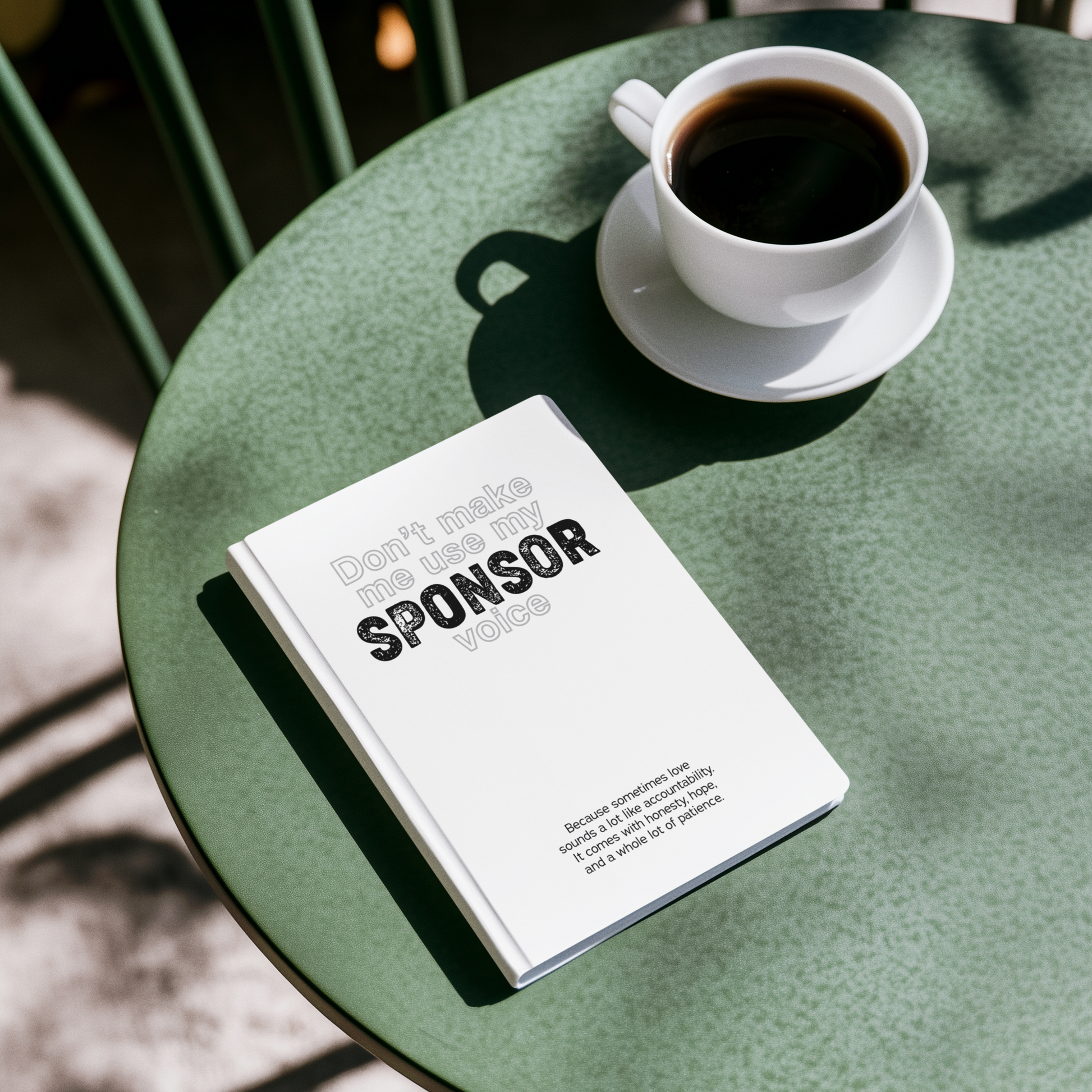 - Hardcover Journal (150 pages): Matte cover with lined, perforated pages ideal for gratitude lists, step work, or personal notes.