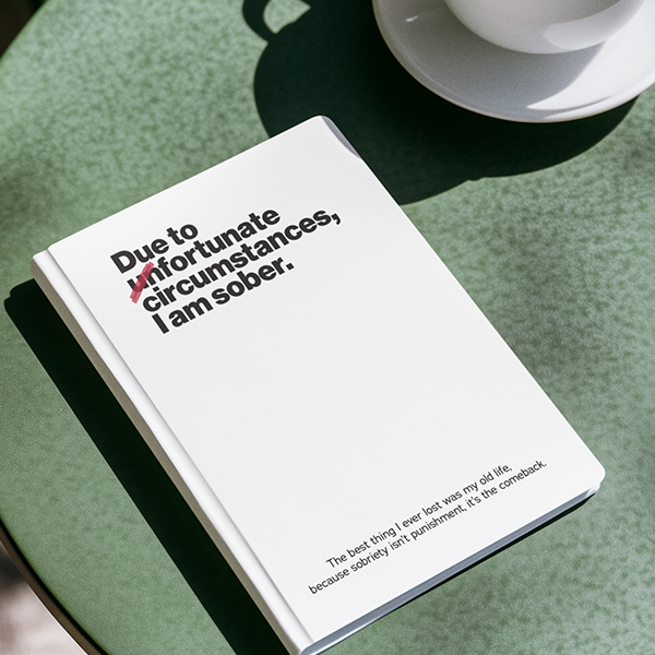 - Hardcover Journal (150 pages): Matte cover with lined, perforated pages ideal for gratitude lists, step work, or personal notes.