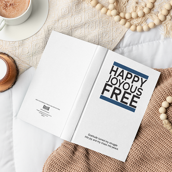 - Hardcover Journal (150 pages): Matte cover with lined, perforated pages ideal for gratitude lists, step work, or personal notes.
