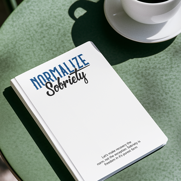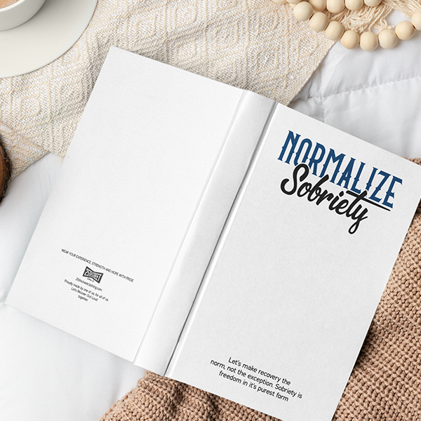 - Hardcover Journal (150 pages): Matte cover with lined, perforated pages ideal for gratitude lists, step work, or personal notes.