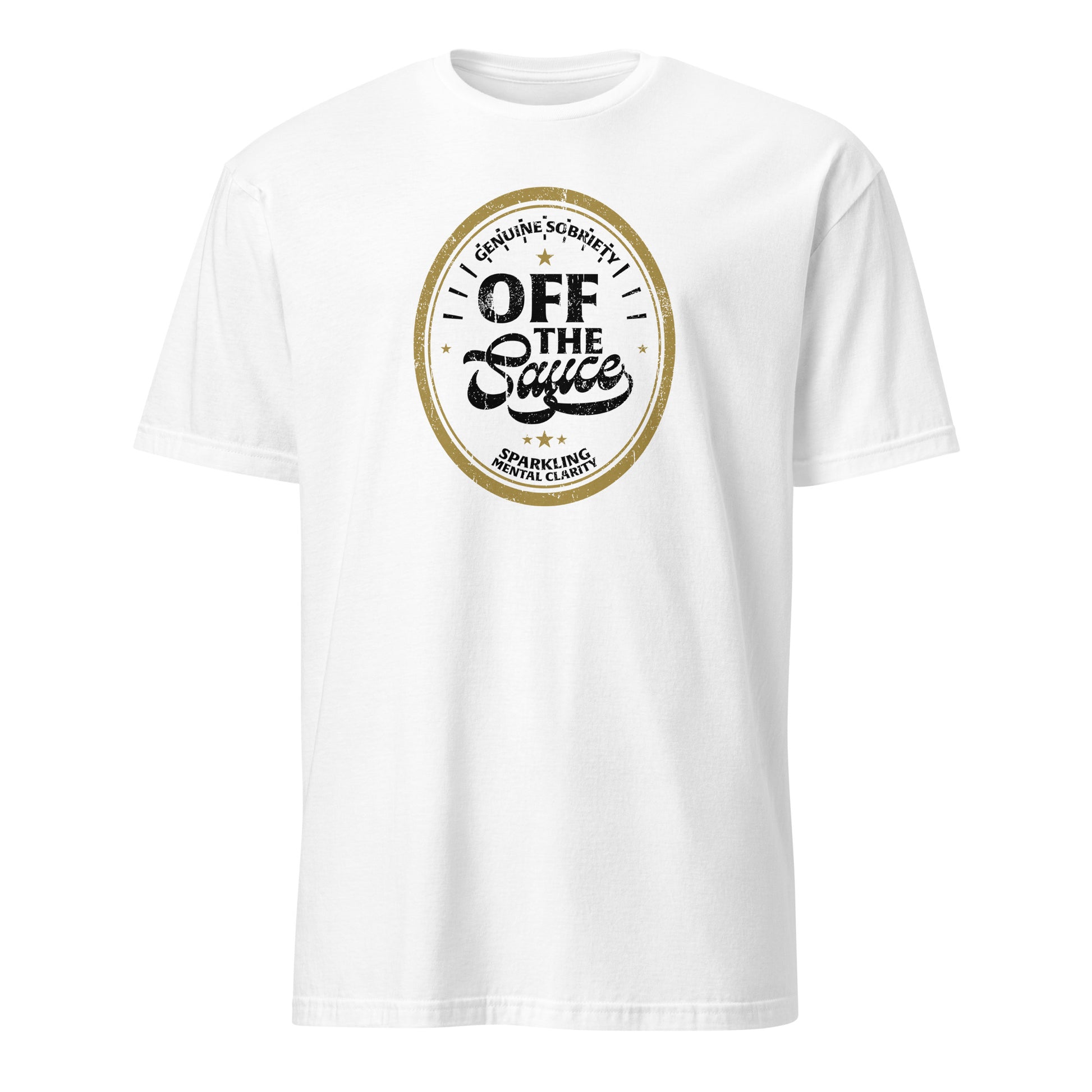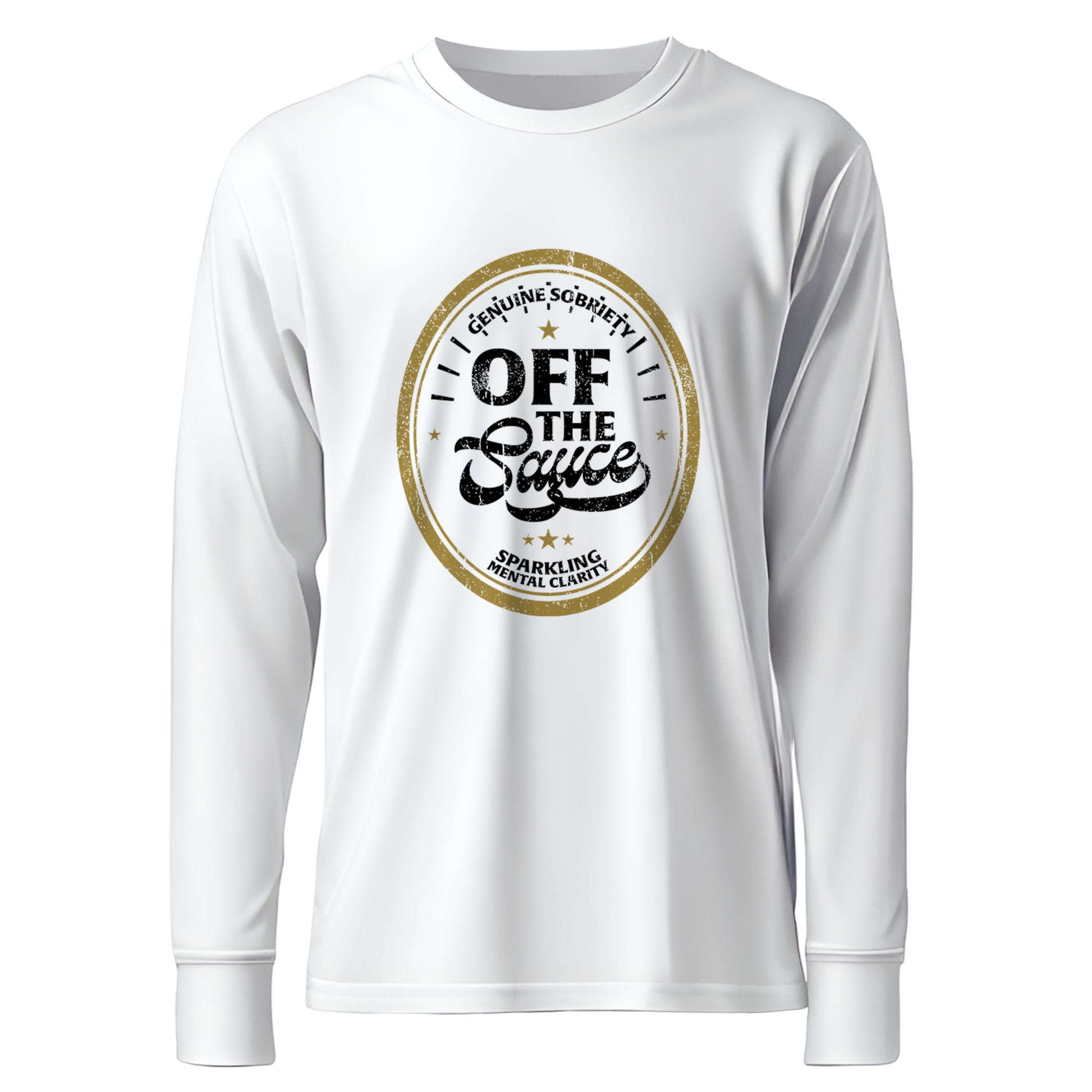 The Off The Sauce design brings humor and pride together in one bold look, celebrating “Genuine Sobriety” and “Sparkling Mental Clarity.” Made by one of us, for all of us, it’s a playful nod to recovery and a toast to living life clear-minded and free.