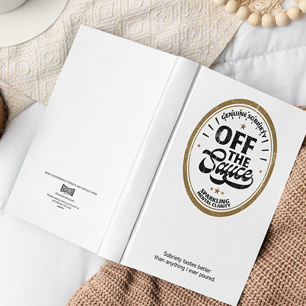 - Hardcover Journal (150 pages): Matte cover with lined, perforated pages ideal for gratitude lists, step work, or personal notes.
